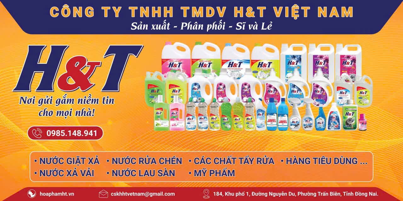 H&T Việt Nam là thương hiệu tiên phong cung cấp các sản phẩm chăm sóc gia đình như nước lau sàn, nước rửa chén và nước giặt xả vải. Đây là những sản phẩm được hình thành từ quá trình nghiên cứu nghiêm túc và tâm huyết của đội ngũ kỹ sư hóa học trong và ngoài nước – những người mang trong mình khát vọng tạo nên sản phẩm an toàn, lành tính cho người tiêu dùng.